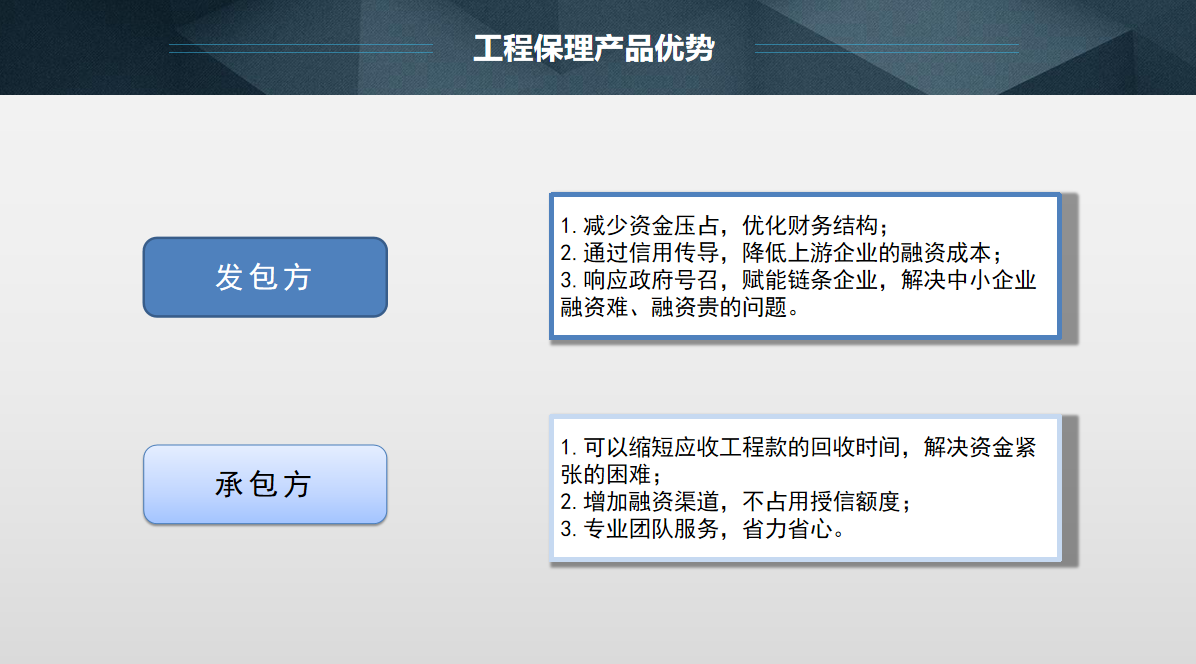 2、反向保理:反向保理是指保理商與規(guī)模較大、資信狀況很高的核心企業(yè)達(dá)成合作,對為其供貨或提供服務(wù)的位于供應(yīng)鏈上游的中小企業(yè)提供保理業(yè)務(wù)服務(wù)。